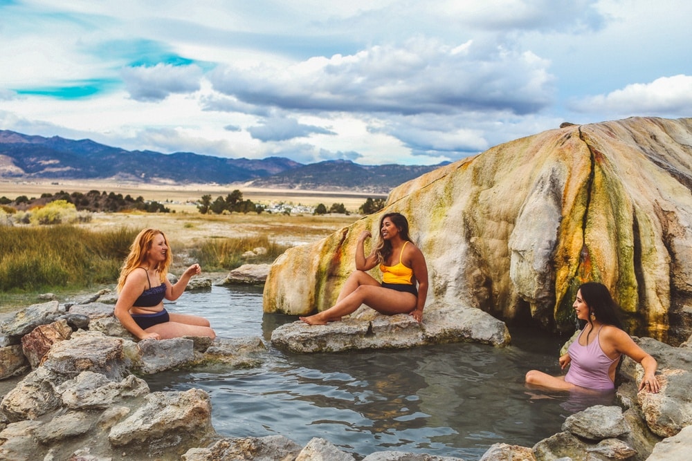 I do own a basic solid blush one piece that just fits wonky. (I believe it’s the Oceana style). It looks a lot better on Brianna (since she has a larger chest than I do ha!) but it’s not one I really wear. It’s the pink swimsuit Brianna is pictured wearing at the hot springs above and further below, for reference. It’s the only style of one-piece from Summersalt that I don’t like.