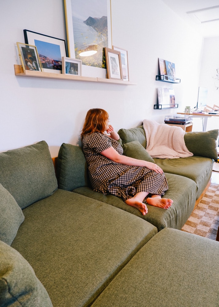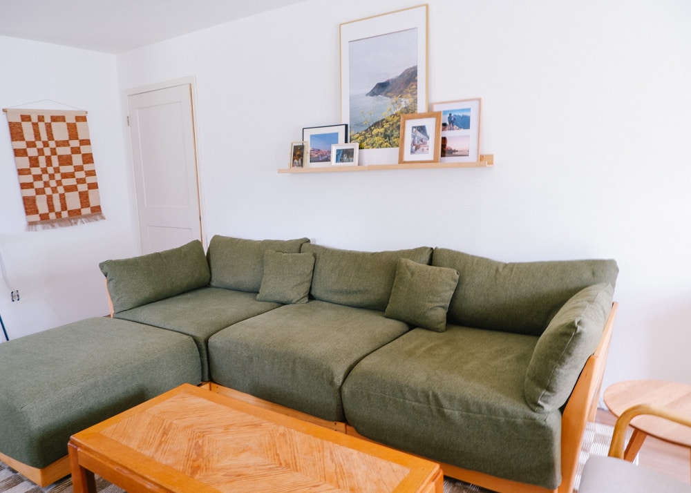 It’s especially appealing if you’re looking to fill a specific space and want a specific color or fabric. Plus it was one of the only that offered removable, washable covers for modular sofas. My husband and I are clumsy so washable is key! Literally spilled my drink on it as I wrote that… so it gives us peace of mind to actually enjoy and relax on our couch.