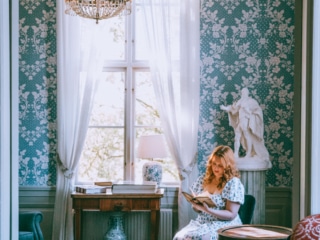 After a refreshing swim or a relaxing sauna session, I’d unwind with a good book in one of the manor house’s second-floor living rooms. Guests have access to the entire upstairs, which is decorated with beautiful historic furniture.