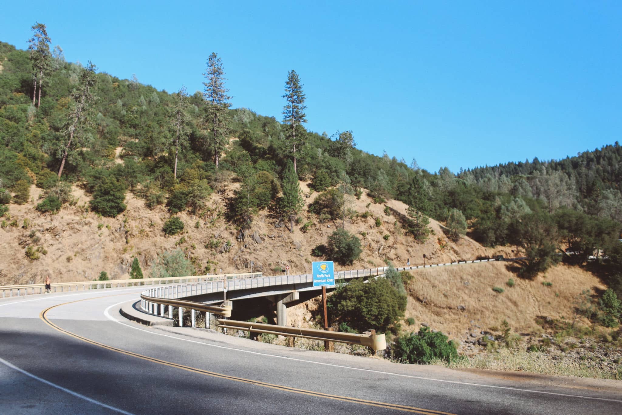 To find this swimming hole, take Hwy 49 South out of Auburn towards to Foresthill Bridge (that big, tall, green bridge in the photo above!) About 10 minutes of winding down the hill, you’ll come to this little bridge that the swimming area is under.