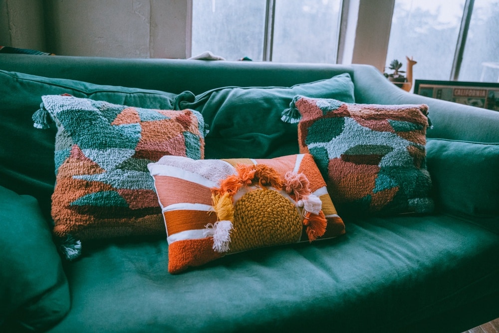 Justina Blakeney pillows are famous for their tassels, textures and interesting designs. I saw these pillows with strong emerald green shades that matched the couch PERFECTLY. It’s almost like they were designed just for my living room. I’m in love.
