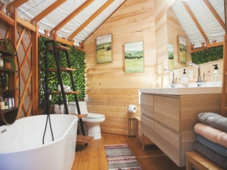 Mystic Quarry Tipi provides guests with a truly unique glamping experience. Instead of relaxing in a tent or a treehouse, guests will call a beautiful tipi home during their stay at this location. The tipi is designed in such a way as to accommodate two adults with one large bed. When you’re relaxing in your glamping tent, you can take advantage of the different nature trails, a swimming pool or outdoor games that are all situated on the 22-acre property.