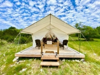 Butterfly Creek is sure to provide you with glamping fun from sun up to sundown. Whether you would like to go and walk along the creek and enjoy the sounds of nature or you want to sit back at the end of the night and cook smores, this glamping site has everything that you need to enjoy the outdoors. Between the outdoor shower and mini-fridge associated with each tent, you are sure to leave your Texas glamping trip relaxed and one with nature.