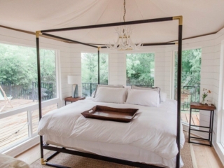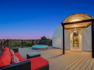 Located only a few minutes outside of downtown Austin, the “Safari for the Soul” suite located at KickBack Cove River Retreat will undoubtedly give you a different perspective concerning the natural beauty of Texas. This location was specifically created for a couple’s getaway and features a large patio, a spacious bedroom and access to different lakefront activities, including fishing and kayaking. Whether you decide to spend the day relaxing in bed or soaking up the sun in the hammock, you are sure to feel the restful and relaxing environment at this glamping site.