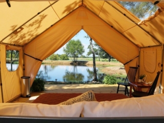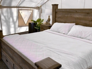 Are you trying to put together a fun getaway for you, your family or friends? The Lake Texoma Resort features a glamping tent that can provide you with a home away from home in many ways. One of the downsides of booking your stay here is that there is no bathroom or shower connected to your glamping tent, which can make things difficult if you plan on glamping on this site near Dallas. You will have access to a hot tub and a pool which can make your stay more relaxing. However, any other amenities are limited.
