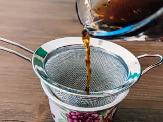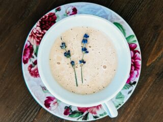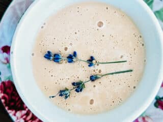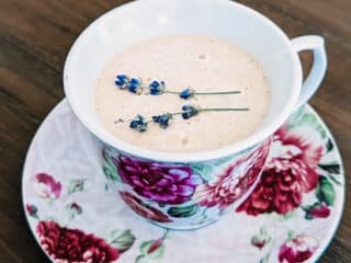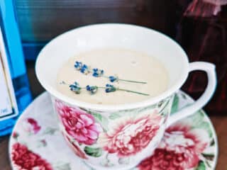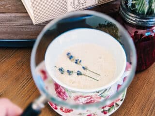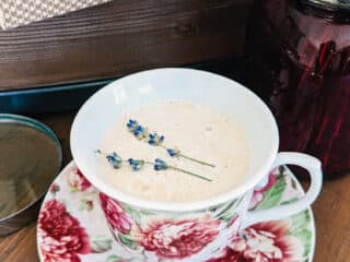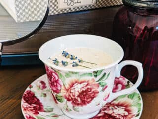 - Strain the hot tea into the serving mug and stir until sugar is dissolved. Discard tea bag and leftover lavender.