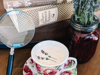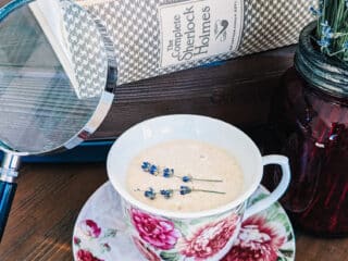 I’m also adding lavender, and of course, London dry gin to make this London Fog cocktail. Alcohol may not be Sherlock’s vice of choice, but I think he would approve.