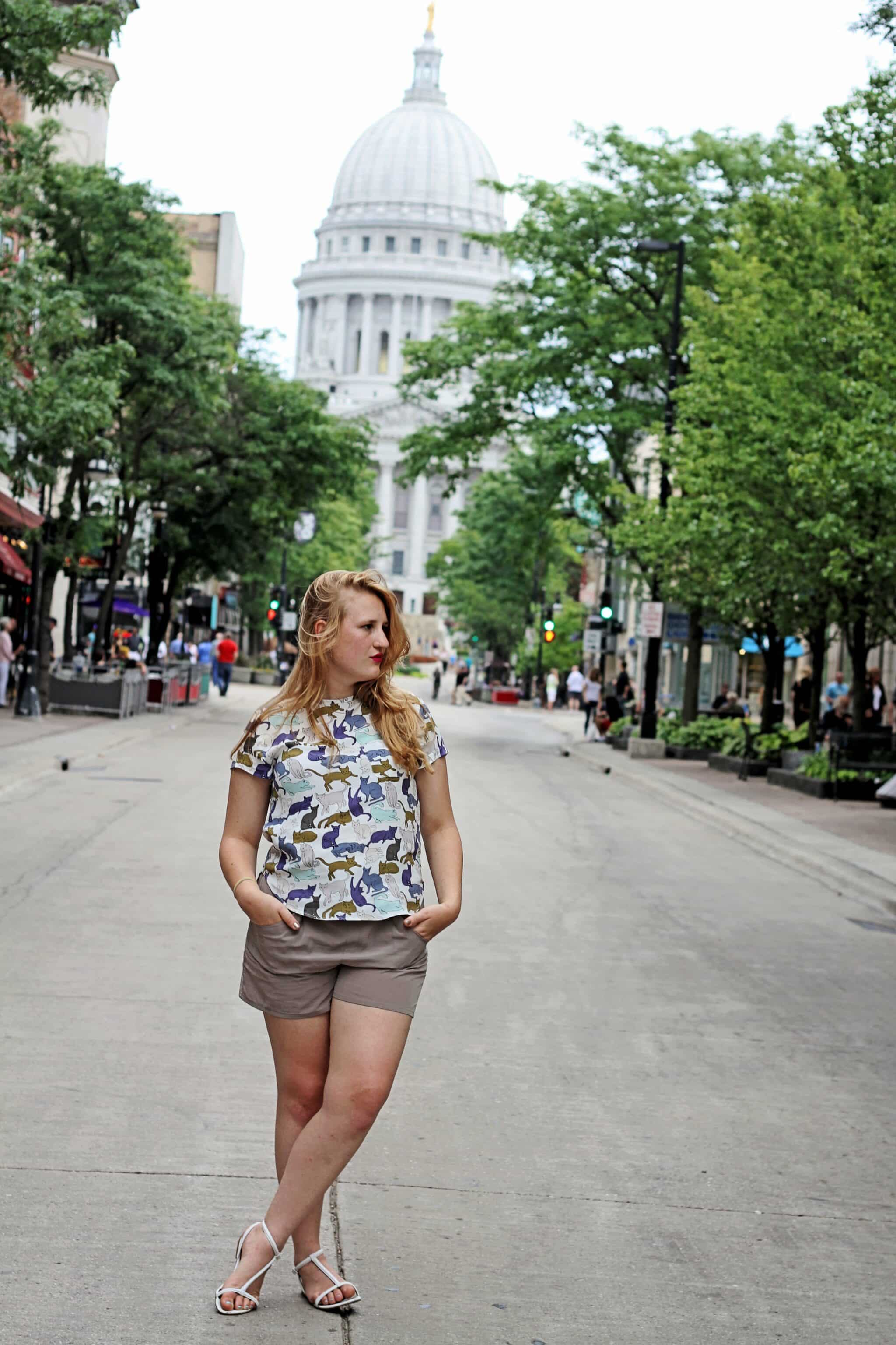 Oh, the cat shirt. I saw this hanging in H&M and immediately feel in love. Like, could this be any more me – crazy cat lady over here! I wore this shirt from H&M for a casual day in Madison, Wisconsin during my trip home since it’s crazy hot and humid there during the summer – even though the skies were overcast the entire time. I was bummed out that I didn’t get much sun – I feel like I’ve been lacking in Vitamin D living in San Francisco!