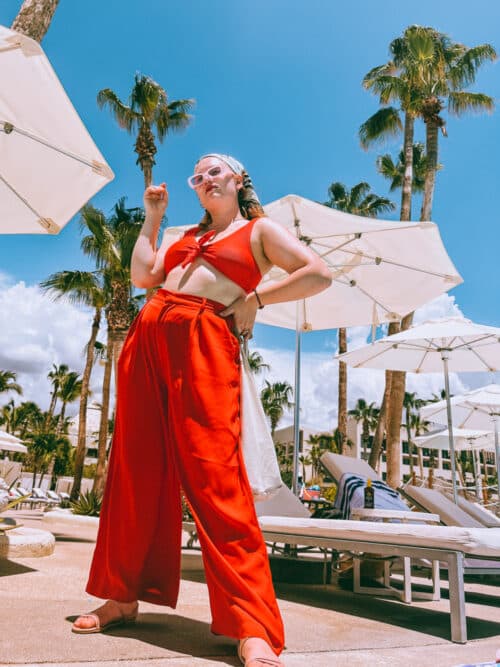 The fabric is really light and flowy, perfect for warm weather like here in Cabo when it’s almost 90 degrees each day. I’ll be honest – I don’t think these pants will last years and years (they are from Amazon after all) but for $30, these babies have brought me so much joy already. Get ready to see a lot of these red pants on Instagram and TikTok!!!