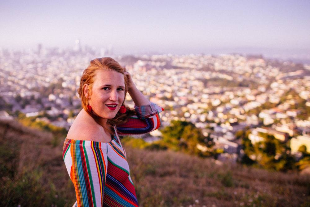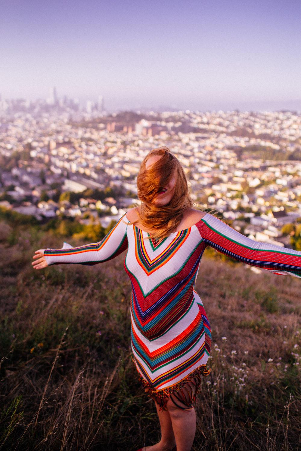 You guys loved this dress that I wore on an IGTV, so I took it to one of my favorite views in San Francisco to shoot and share with you! Bernal Heights is usually windy, but the view from the top is AMAZING. On a clear day, you can see the Bay Bridge behind the skyline.