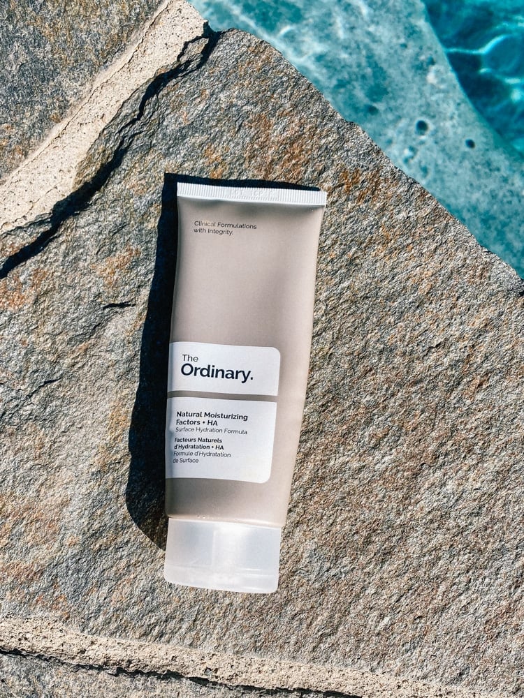 It’s nothing fancy, but The Ordinary Natural Moisturizing Factors + HA has a great price, great feel, and has significantly improved the texture of my skin.