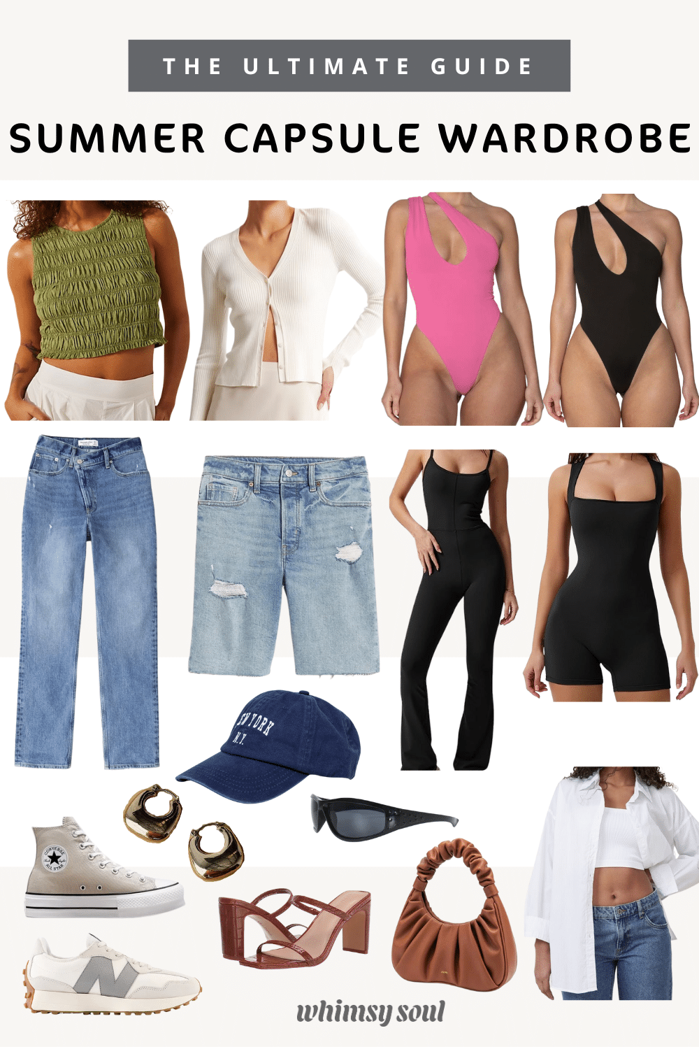 I found 20+ items that could create a pretty solid capsule wardrobe from basic tops, jeans, denim shorts, linen, shoes, and other accessories (psst, I also added swimsuits that can be worn as bodysuits!)