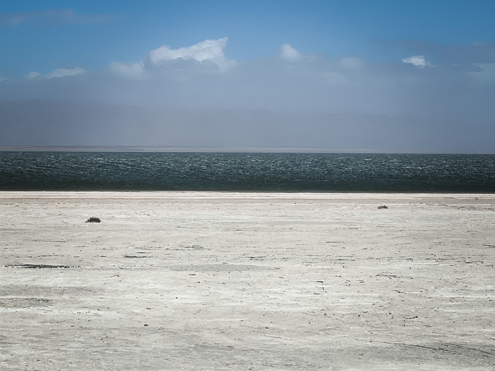 The famous Salton Sea is about 32 miles East of Borrego Springs, and I’ve never been there before I just had to check it out while visiting. The Salton Sea was formed in 1905 when an irrigation canal overflowed and formed the lake. It was once a thriving desert lake community with quirky hotels and dining, but now it’s mostly abandoned as the lake is now toxic due to agricultural runoff.