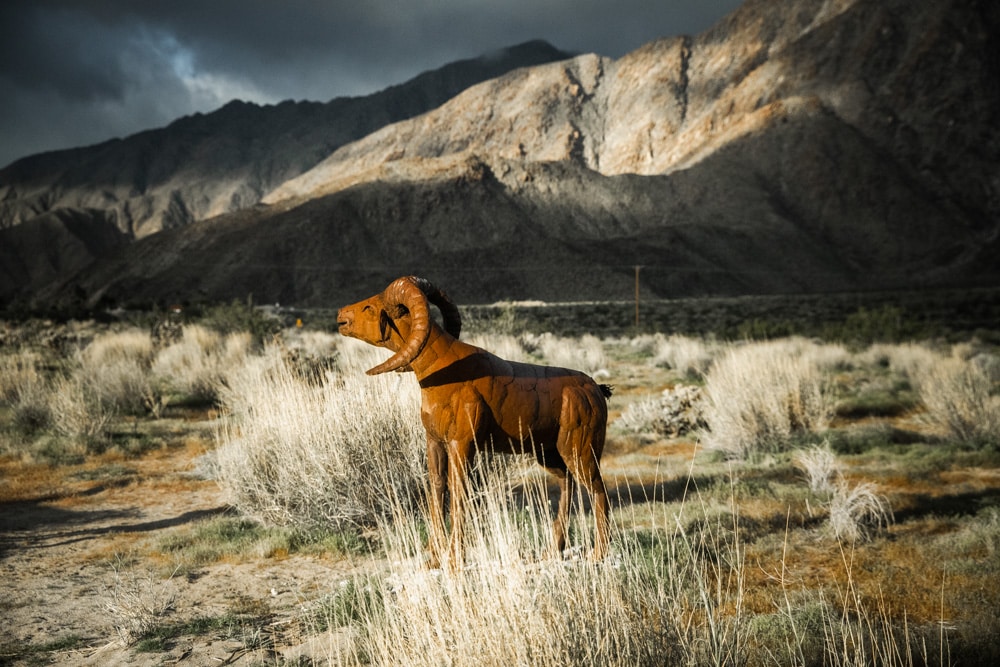 You’ve probably seen photos of the famous metal sculptures dotting the desert around Anza Borrego, the most famous being the dragon. These are created by Ricardo Breceda and he’s installed over 130 metal sculptures all around Borrego Valley (130!!!)