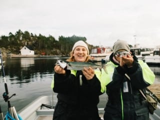 The group size was just six or seven people, so everyone had space on the boat and plenty of time to chat with the guide. They picked us up in the city center and drove us about 45 minutes to the Øygarden Islands. Once there, we suited up in warm waterproof gear and set out to catch fish and crab in the fjords.