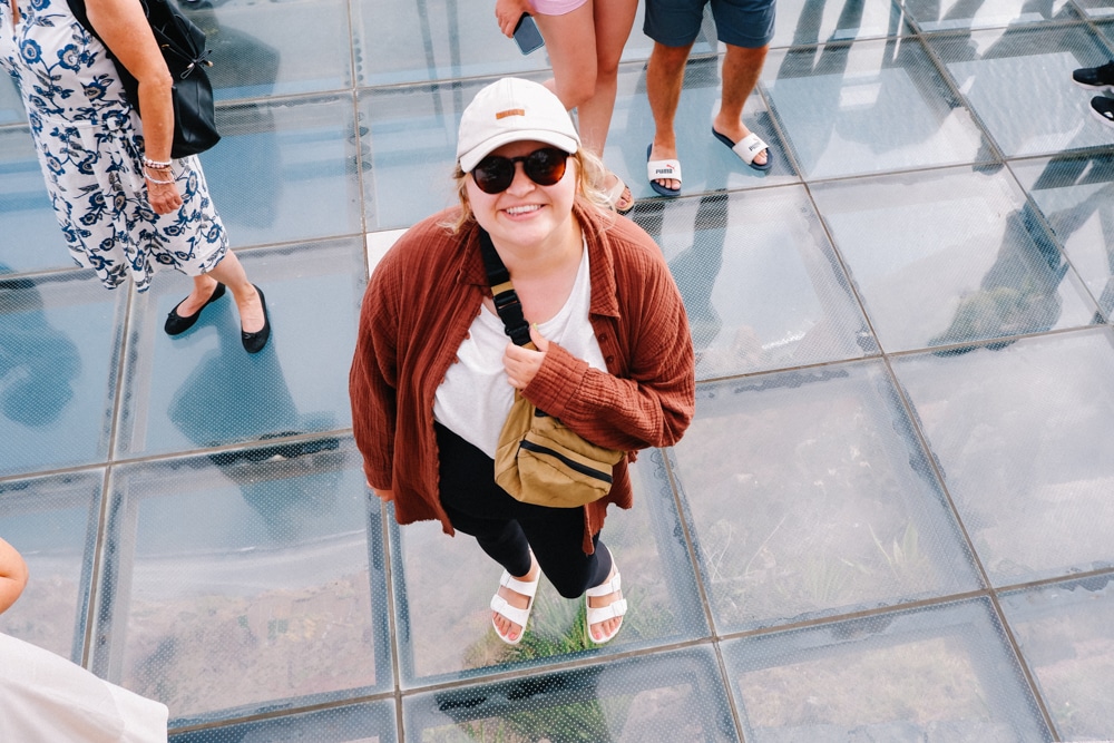 This one is so fun! It’s a clear deck on the edge of the island cliff where you’re 500 meters above sea level and can look directly down at it.