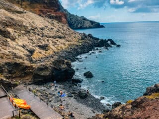 Praia do Porto do Seixal is one of the most popular beaches in Madeira because of its volcanic black sand. Plus the mountainous views are just out of this world.