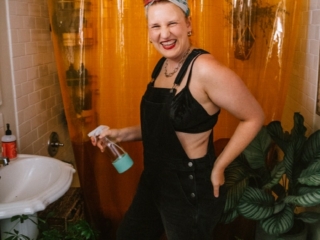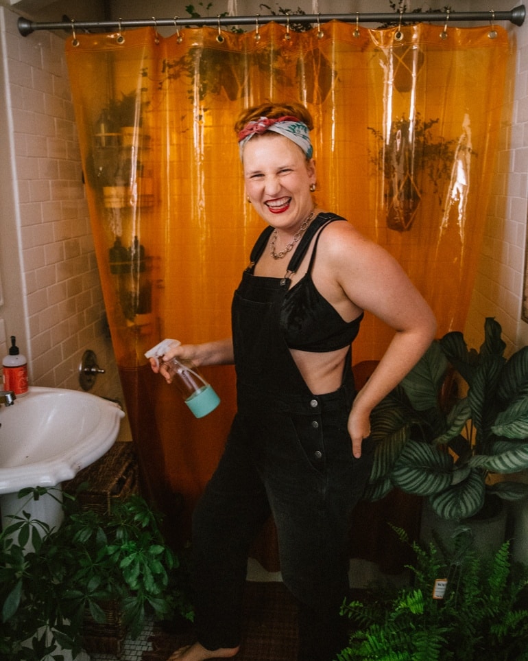 I also have to re-pot some plants so the day really called for overalls. This black pair from Old Navy is super comfy. I’m wearing a 16 since it runs a bit small, so make sure to size up. At the time of writing this post, they are 30% off, too! I channeled some Rosie Riveter vibes with a red headscarf (thrifted) and red lipstick (this is my favorite right now.) My black bra is old, you can find something similar here.