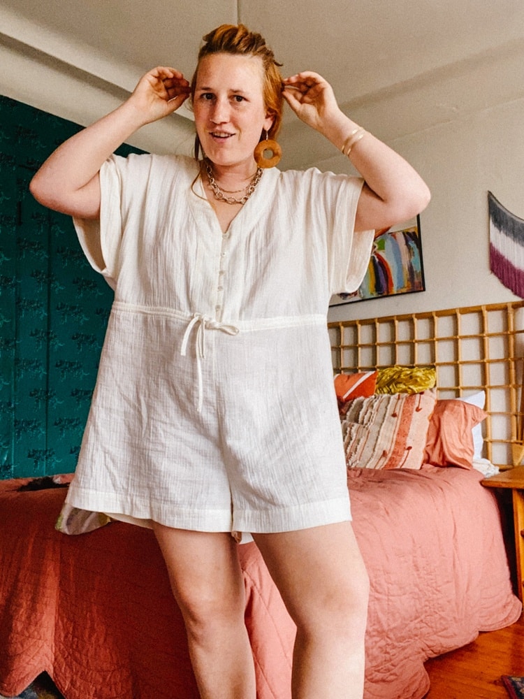 After coming back from camping, I unpacked, showered and pulled immediately pulled on this comfy linen romper from Madewell. It’s super breezy and lightweight for warm days (even though it was 50 and foggy outside my window – ha!) I’m wearing an XL but it runs big, so size down.