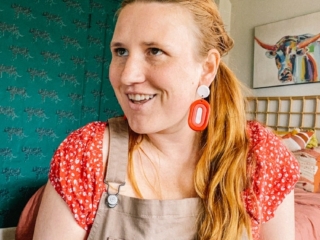 For the party that evening I wore my new tan overalls from Old Navy that I literally can’t stop wearing. So dang comfy and so many pockets! Under I wore a thrifted red crop top (similar here) along with clay earrings (similar here.) For shoes, I went with my red Rothy’s that I adore. And TONS of sunscreen!