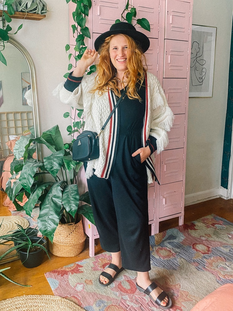 Since summer in San Francisco is cold, foggy and windy, I wore my favorite Uniqlo black jumpsuit with pockets. It’s my go-to jumpsuit for travel days and errands. It’s 4 years old but I found a super similar style at Old Navy that’s in stock right now! Shoes from Target and so is the hat. Funny story about this hat – my friend Bri left it in my car last year and it sat in my back seat for literal months. Finally, she just gave it to me to keep so it came upstairs to my closet.