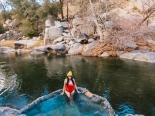 Miracle Hot Springs along the Kern River are special for a few reasons. There’s multiple tubs all with drastically different temperatures. They’re easy to find and hike into, making them friendly for all ages but are tucked enough into the mountains that they aren’t too crowded. AND they overlook the Kern River so you can plunge in the river and then warm up in the tub (yass!)