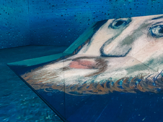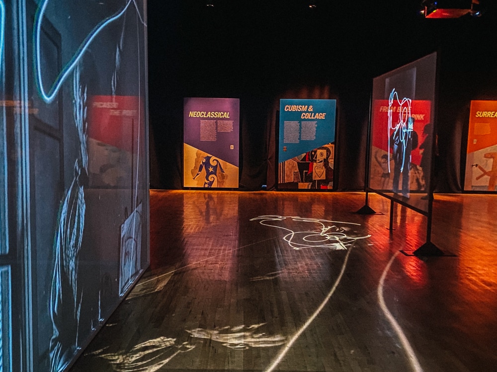 The first part has large educational panels you can read to get up to be reminded the differences between his rose periods and blue, and how he impacted the surrealism movements in the art world. Then, you can move into the projection art area. So, you don’t need to know anything about the art master to experience Picasso’s work in the show.