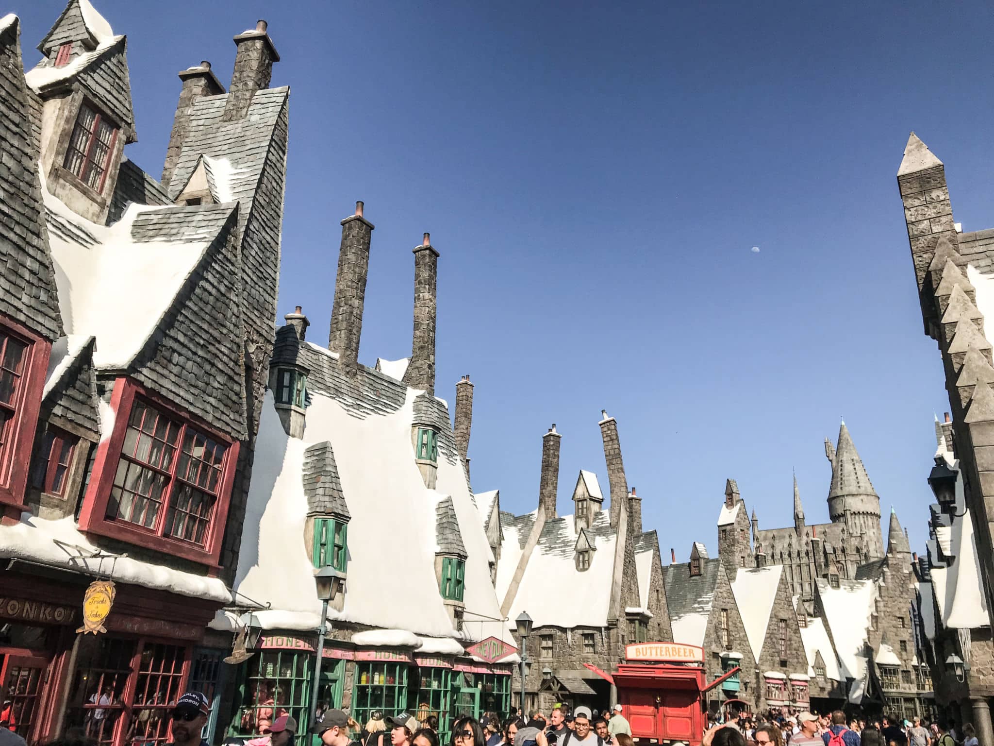 The Universal Orlando Resort theme park is much bigger and has additional things like Diagon Alley and a chance to ride the Hogwarts Express train.