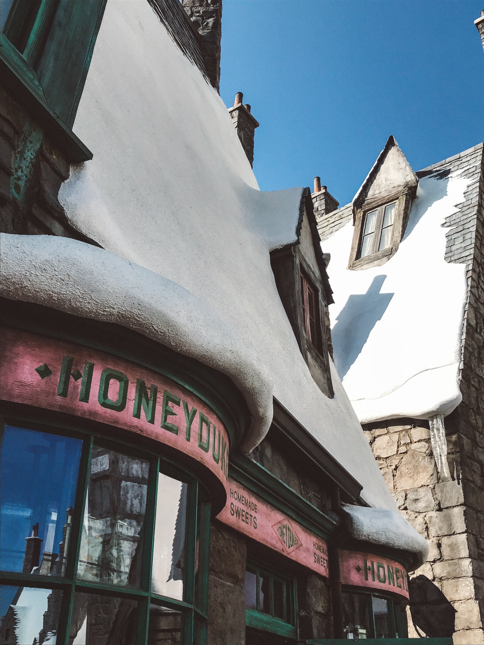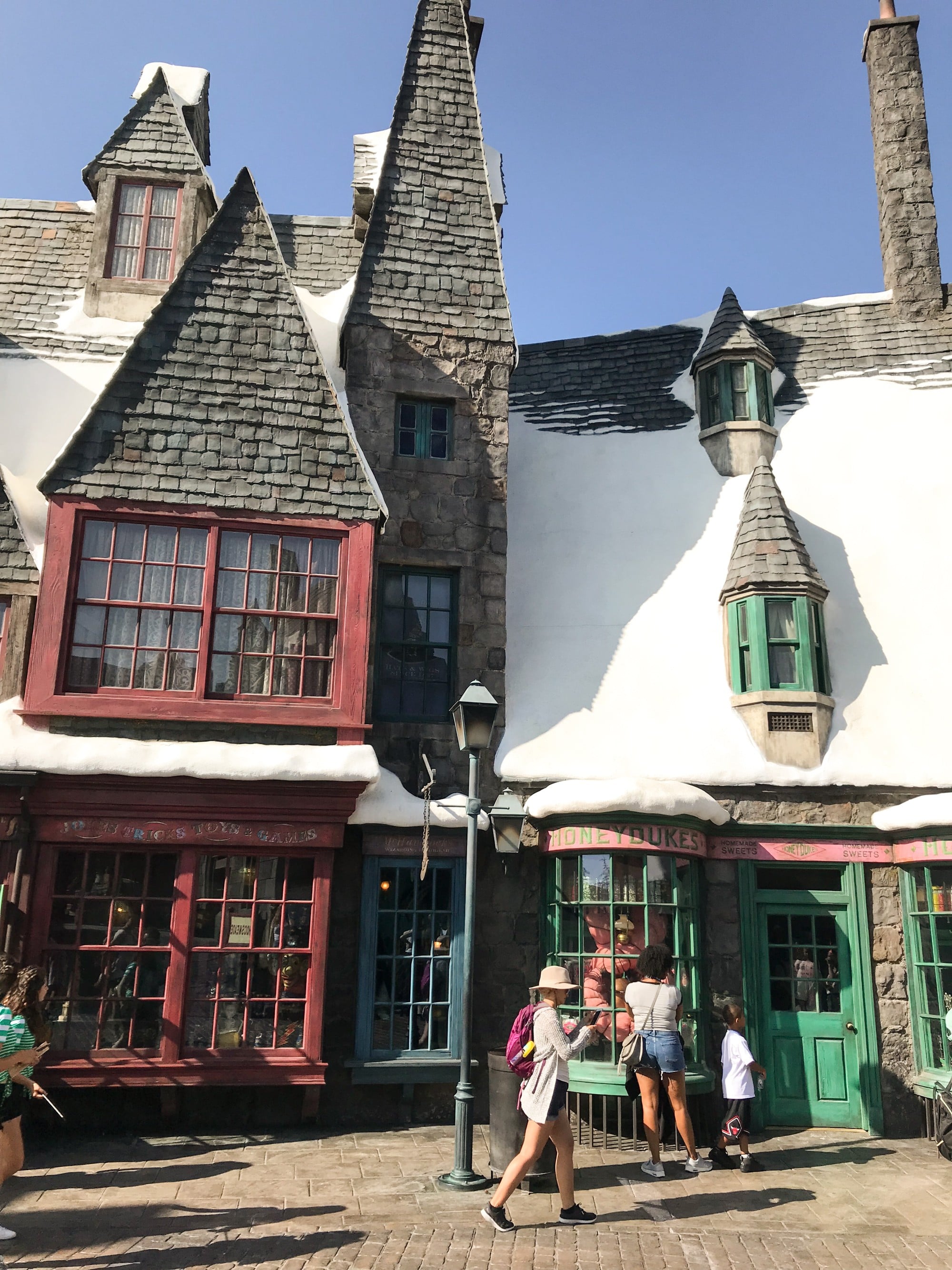 The entrance is right by Ollivanders in case you have a hard time finding it, too! The bathrooms are really fun because they blast Moaning Myrtle’s voice inside!