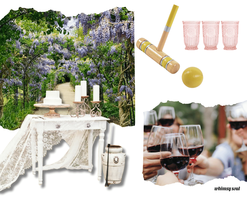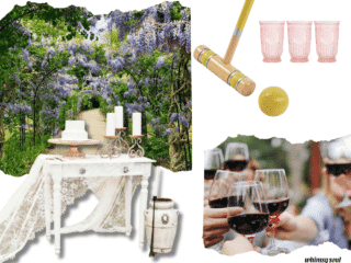 To do this theme up right, you’ll need mismatched glassware, thrifted plates, lace tablecloths, and some fun garden games like cornhole, horseshoes, and (of course) croquet.