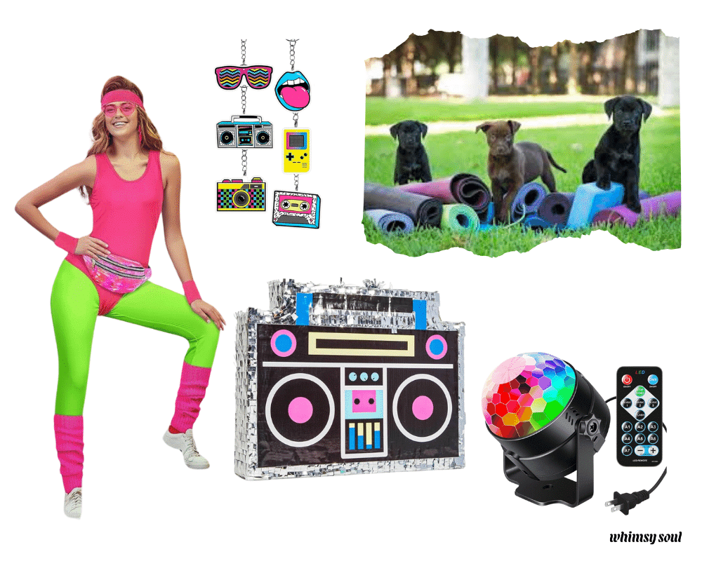 Classic 80s pop music is a requirement to play on the stereo all evening long and it would be iconic if you took the gang to one of those goat or puppy yoga classes in your full garb. (If you do this, please send me a photo.)