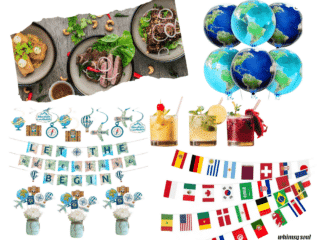 The around-the-world theme works best as a potluck for bigger parties. I suggest having everyone bring different food from different parts of the world! One person can be in charge of the French baguettes, another can bring Russian-inspired drinks (so just straight vodka), and another can bring the Italian dinner.