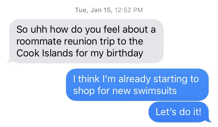 So, how did we pick the Cook Islands of all places? Melanie and Sarah are big fans of Survivor and season 13 circa 2006 was filmed in the Cook Islands, so when she spotted an insanely great flight deal online back in January Melanie texted me this…