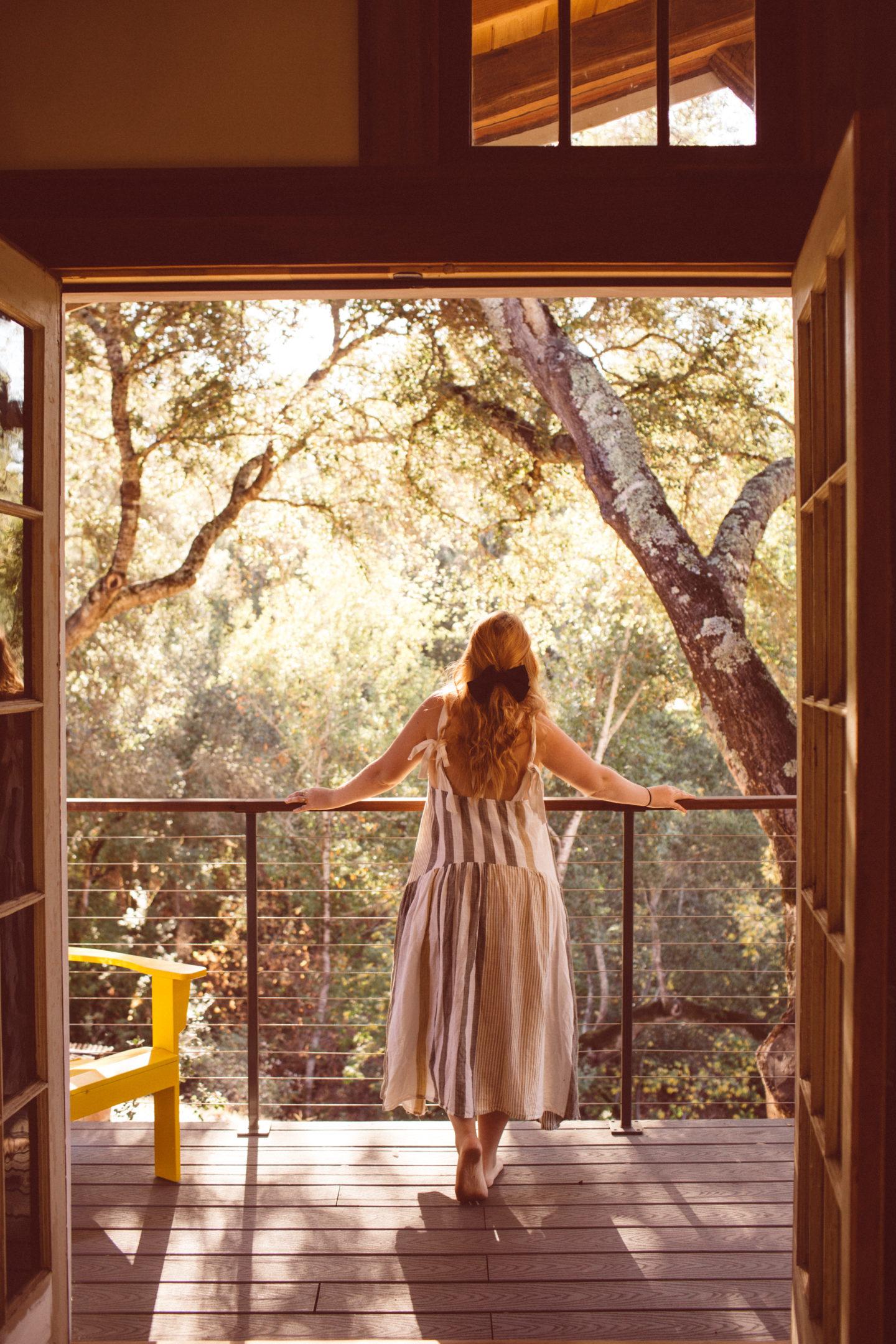Triple S Ranch is utterly unique to Napa Valley for many reasons, but perhaps what really makes them stand out against the other wedding and events venues is that guests can lodge onsite in one of the cute little cabins! That’s what we spent the night in. These cabins are remodeled and modern, but cozy feeling. The one we were in had floor to ceiling windows and a porch with forest views. We spent a lot of time reading on that porch – in the morning and also at night right before bed. There are some rooms in the Victorian house and in the library as well. Plenty of space for guests!