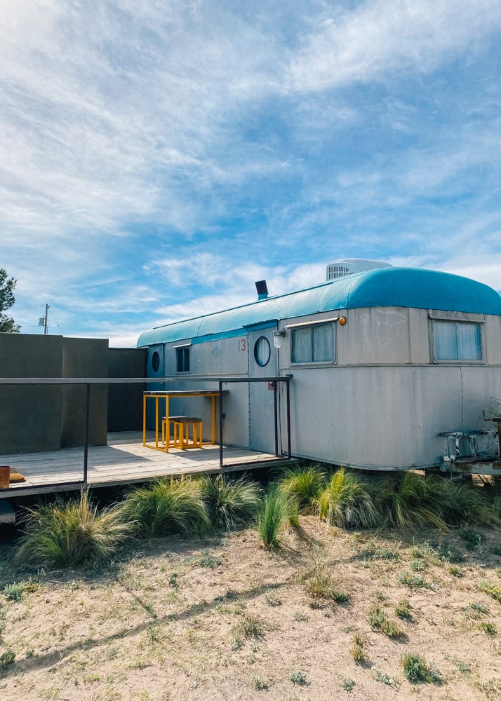 A little bit further away in Marfa, Hotel Saint George has been open since 1886, but it’s been completely renovated with a modern, industrial feel. The onsite bar and restaurant is very good, and the pool is amazing! So if you’re looking for somewhere modern with all the amenities you’d expect at a hotel, this is the place!