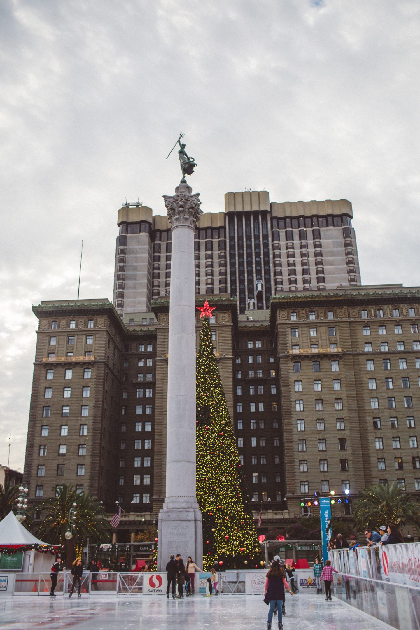 The ice rink is smack in the middle of Union Square in San Francisco and is by far the best Bay Area city ice skating rink for the holidays. There is another holiday ice rink near the Ferry Building (called the Embarcadero ice rink), the Yerba Buena ice skating and a few skating rinks in San Jose, but I love the magical feeling of the giant Christmas tree with the big, tall building towering over you. Such a festive experience! Truly the best ice skate in San Francisco.
