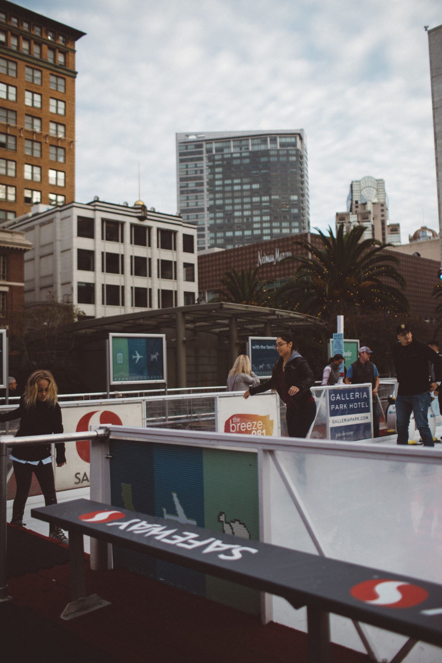 Don’t worry – you don’t have to skate the whole 1.5 hours. There’s a little Safeway Holiday corner with chairs you can lounge on if needed. There are lockers for $3 a token that you can safely store your things. Purses and backpacks aren’t allowed on the rink, so take your photos before skating as you may not be allowed to take cameras on.