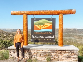 From there, you’ll continue driving through the Flaming Gorge Recreation Area and Ashley National Forest, curving along the Flaming Gorge Reservoir on scenic byways, making stops at the Flaming Gorge Dam, the Red Canyon Visitor Center, where you can see the gorge way up high, Sheep Creek, and more, with a nice lunch break along the way.