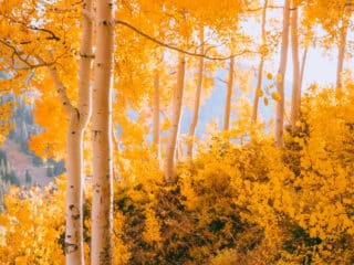 - Alta hiking trail: Park your car near the Snowpine Lodge and find the hiking trailhead across the street from it. About a 5-minute hike into this trail you’ll find a huge grove of yellow aspen trees that are just stunning in the evening light!