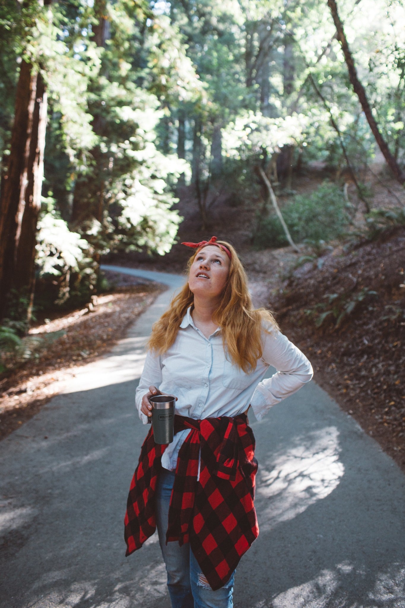 Camping clothes: ones that can get dirt, campfire smoke and stains on them. I love button-up shirts from places like Old Navy, along with comfy jeans with pockets. A bandana is handy as it triples as a way to hold back hair, wipe sweat from your face and also as a pot-holder. Plaid is your stereotypical outdoor shirt, but I love mine and recommend bringing a plaid shirt, too. Wear slip-on shoes for around the campsite and hiking boots for venturing around Big Sur.