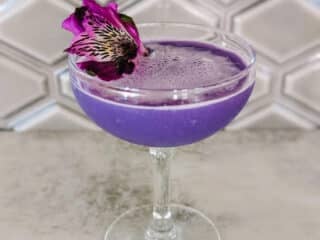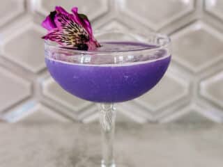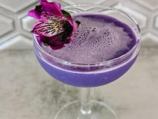 The mellow, creamy mouthfeel of this purple gin drink finishes with a hint of tartness and sweet vanilla. It may not give you heart-shaped herb superpowers, but you’ll feel transported to Wakanda.