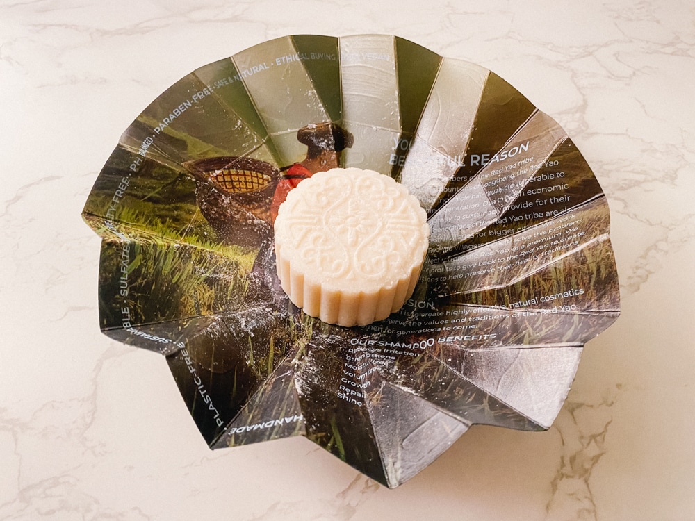 One note if it’s your first experience with bar shampoo, there’s a slight learning curve to using it. You need to lather the product in your hands and make sure you’re dipping it back under the shower head often to help the product transfer onto the scalp.