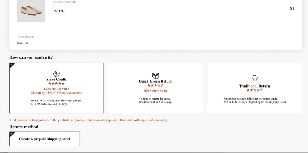 For my Vivaia Flats that didn’t make the cut for me, I did have to print out my return label but returns are free and otherwise pretty easy.