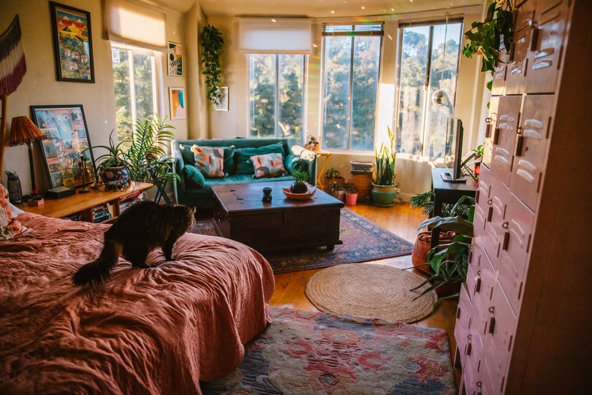 I added new shelving from Ikea (under $150!), swapped the dining table for a standing desk since my husband works from the kitchen, grabbed a new smart litter box to make chores easier for us both and I also tossed the gross old rug and got a new Ruggable one.