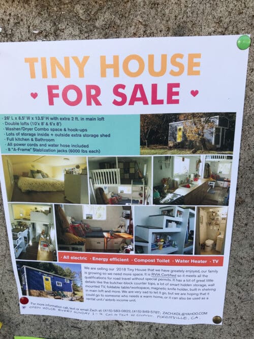 We booked this Airbnb in Bolinas and while grabbing coffee, I took a look at the bulletin board in the cafe area and saw a flyer for a tiny home for sale in Forestville.