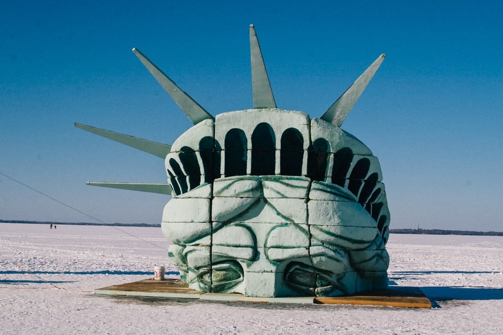 Every winter, an inflatable replica of The Statue of Liberty is installed on the frozen Lake Mendota. Well, her head and torch at least. This was started back in the 70’s as a college prank but was quickly turned into a tradition.