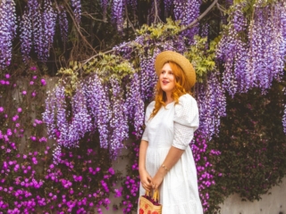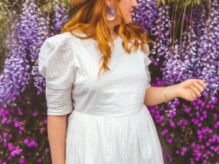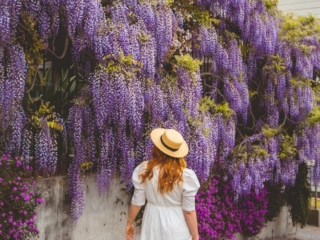 What I love about wisteria is how dang purple it is in real life. These photos don’t really have much color correction at all. I personally think white outfits look the most romantic here, but I would also consider a fun pop of pink or lilac, too (like this lilac dress).