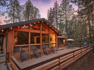 This cool cabin is outside Oakhurst, aka the Southern Entrance to Yosemite. There's so many fun things to do in Oakhurst and Bass Lake year-round, so this is a smart choice if you're staying more than just a few days in the Yosemite area.