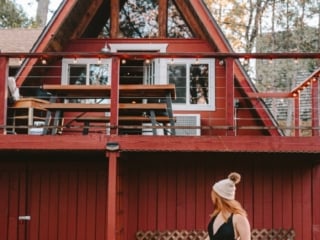 I usually always do a road trip up to Lake Tahoe in the winter, and sometimes even more snowy places, like Leavenworth or one of the cute Big Bear cabins. Most recently, the girls and I booked out this cute Aframe Christmas cabin near Yosemite to soak up all the holiday vibes together. Here’s what I packed along with me plus tons of cute winter cabin outfit ideas!