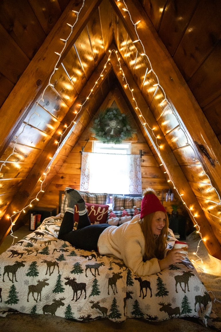 - Christmas Decor: Many cabin rentals don’t provide decor, so if you are booking a winter cabin for the holidays, bring your own tree to make it extra magical inside! I recommend a pre-lit one so it’s super easy to pack, set up and takedown.
